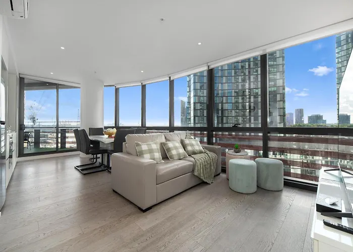 A Docklands Melbourne Victoria Harbour Views Apartman könnyű elérhetőséget nyújt az olyan városi nevezetességekhez, mint az egy 5 perces sétára található D'Albora Marinas Victoria kikötő. A teraszt kínáló 2 hálószobás apartman továbbá úszómedencével várja a vendégeket, hogy tökéletes kikapcsolódásban legyen részük.